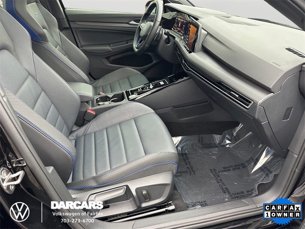 CARFAX One-Owner. Golf R 2.0T AWD, 4D Hatchback, 2.0L TSI DOHC, 7-Speed DSG Automatic with Tiptronic, AWD, Summit White, Titan Black w/Blue Accents w/Perforated Nappa Leather Seating Surfaces, 19 Metallic Gray Alloy Wheels, 9 Speakers, Active Cruise Control, Air Conditioning, Alloy wheels, Auto High-beam Headlights, Automatic temperature control, Brake assist, Delay-off headlights, Exterior Parking Camera Rear, Four wheel independent suspension, Front Bucket Seats, Front dual zone A/C, Front fog lights, Fully automatic headlights, harman/kardon® Speakers, Heads-Up Display, Heated door mirrors, Heated front seats, Low tire pressure warning, Memory seat, Navigation System, Perforated Nappa Leather Seating Surfaces, Power door mirrors, Power driver seat, Power moonroof, Power steering, Power windows, Radio data system, Radio: MIB3 Discover Pro AM/FM/HD, Rain sensing wipers, Rear window defroster, Remote keyless entry, Speed-sensing steering, Speed-Sensitive Wipers, Steering wheel mounted audio controls, Turn signal indicator mirrors, Ventilated front seats, Wheels: 19 Metallic Gray Painted Multi-Spke Alloy.