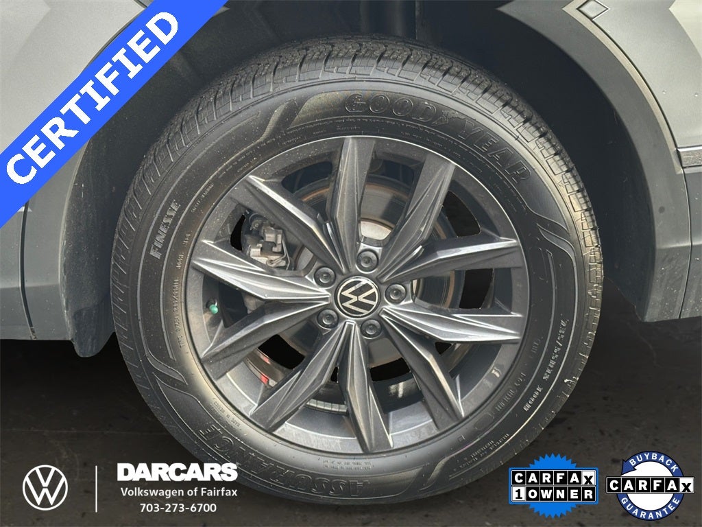 CARFAX One-Owner. Tiguan 2.0T SE, 4D Sport Utility, 2.0L TSI DOHC, 8-Speed Automatic with Tiptronic, AWD, Pyrite Silver Metallic, Titan Black w/Perforated V-Tex Leatherette Seating Surfaces, 4-Wheel Independent Suspension, 6 Speakers, Active Cruise Control, Alloy wheels, AM/FM radio: SiriusXM with 360L, Automatic temperature control, Brake assist, Delay-off headlights, Electronic Stability Control, Exterior Parking Camera Rear, Front dual zone A/C, Fully automatic headlights, Heated door mirrors, Heated front seats, Leather Shift Knob, Low tire pressure warning, Panoramic Sunroof Package, Perforated V-Tex Leatherette Seating Surfaces, Power door mirrors, Power driver seat, Power steering, Radio: MIB3 Composition Media AM/FM/HD, Rain sensing wipers, Rear window defroster, Rear window wiper, Remote keyless entry, Steering wheel mounted audio controls, Turn signal indicator mirrors. Certified.
